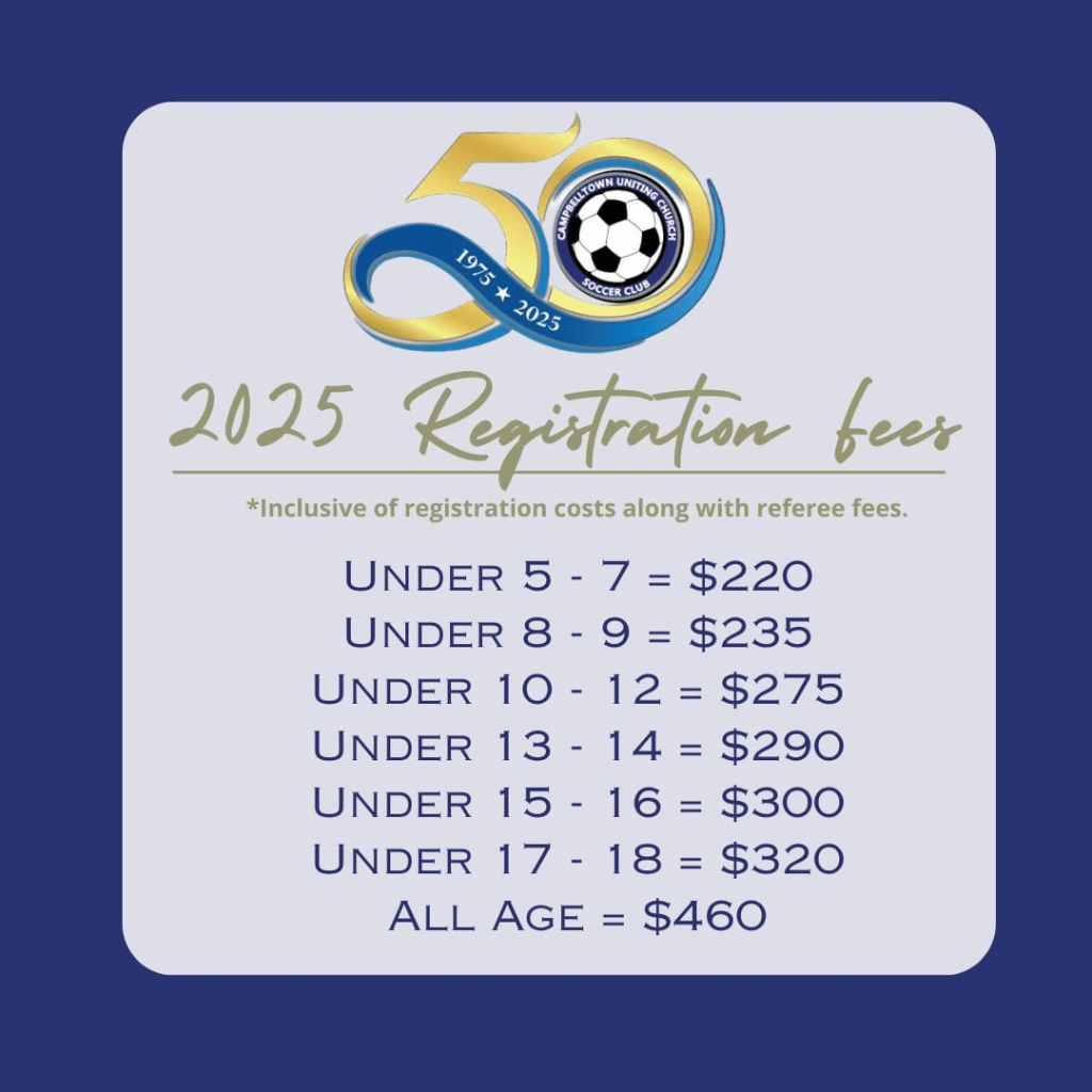 Head to cucsc.org.au/registrations for more info + registration links OR sign onto playfootball.com.au and search for ‘Campbelltown Uniting Church SC’.